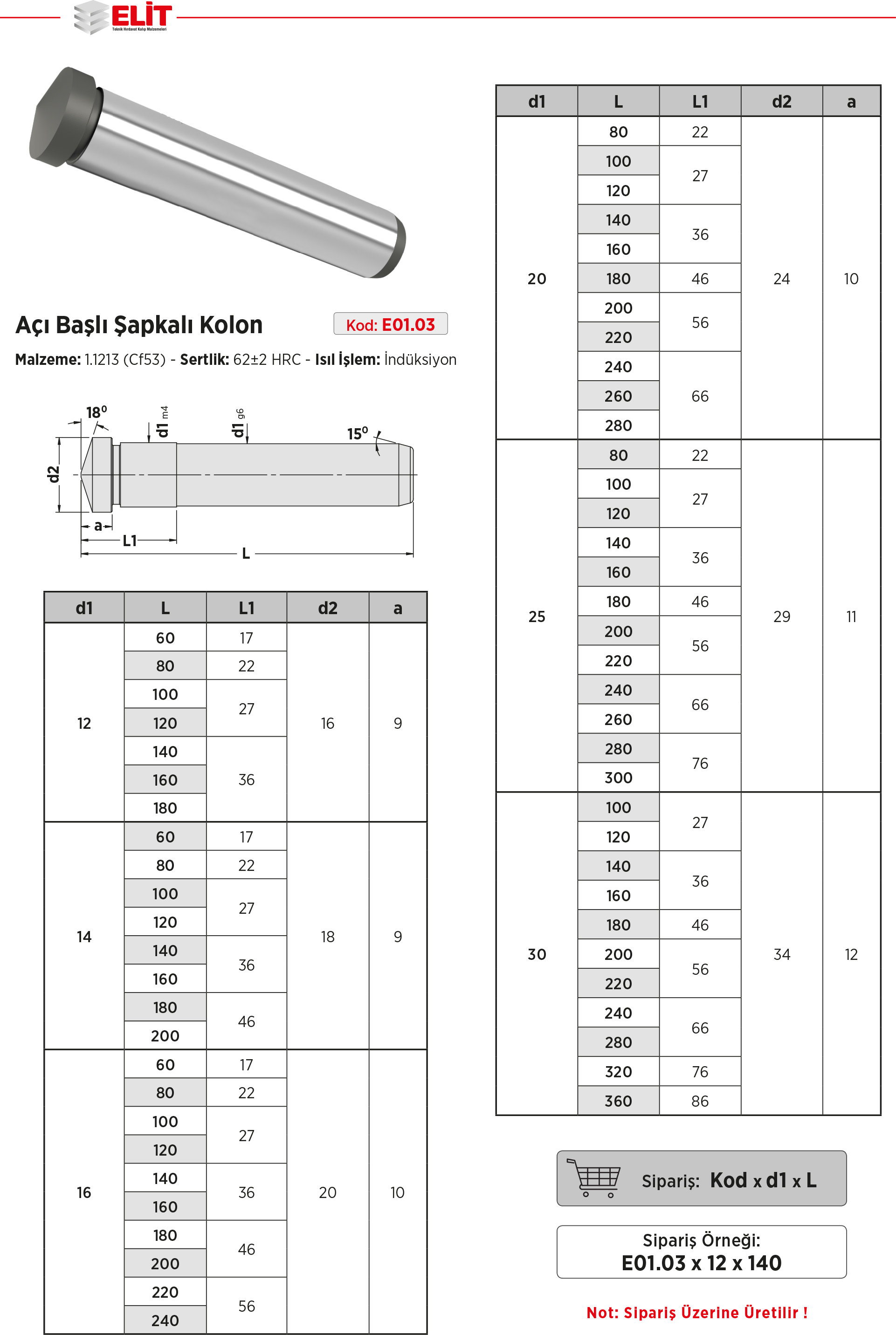 Açı Başlı Şapkalı Kolon